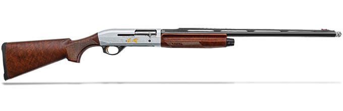 Benelli Montefeltro 20 Gauge 24″ Silver Featherweight Satin Walnut/Weathercoat Nickl/Blue Etched Game Scene Semi-Auto Shotgun 10819